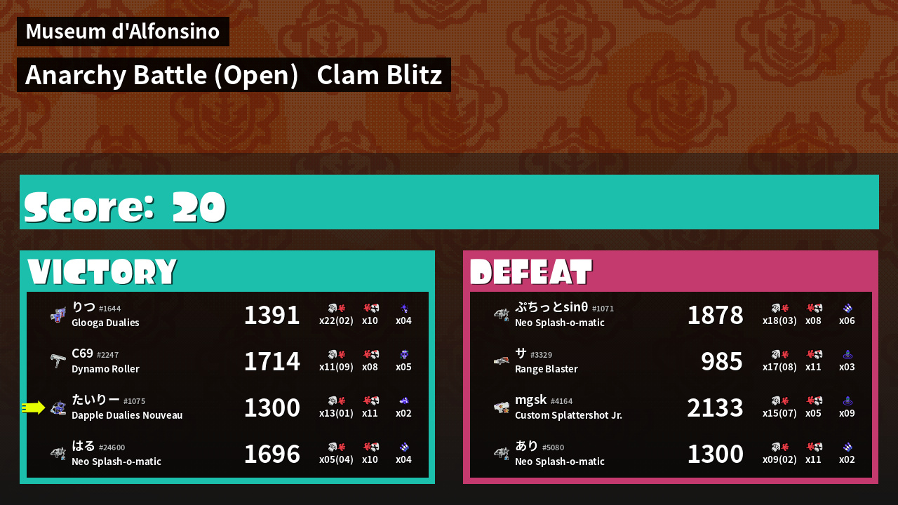 | Mode | Clam Blitz - Anarchy Battle (Open) | ||