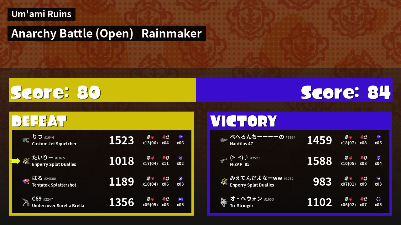 | Mode | Rainmaker - Anarchy Battle (Open) | ||