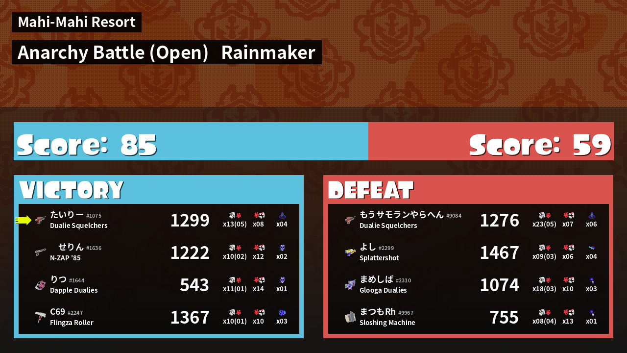 | Mode | Rainmaker - Anarchy Battle (Open) | ||