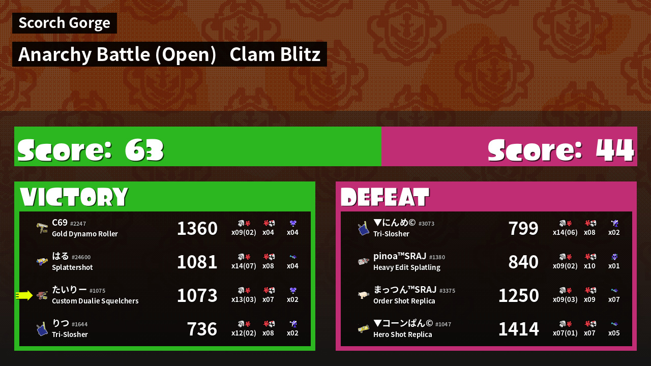 | Mode | Clam Blitz - Anarchy Battle (Open) | ||