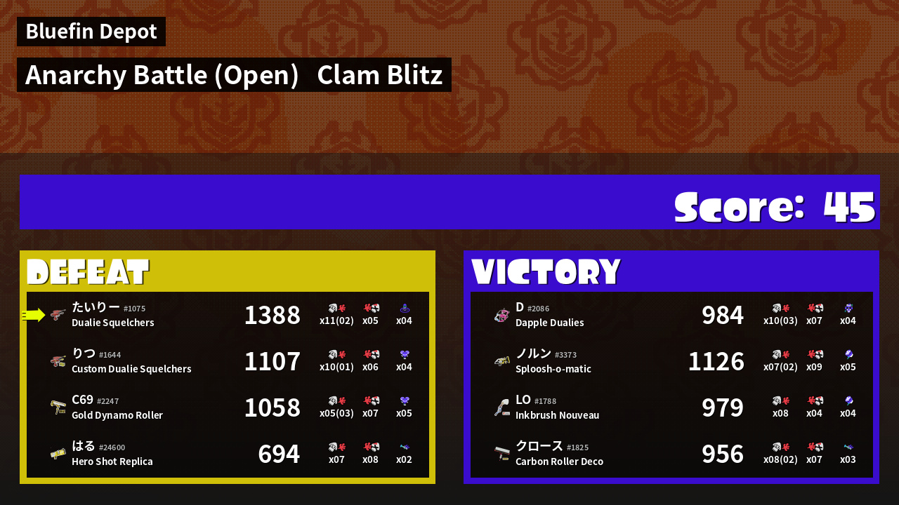 | Mode | Clam Blitz - Anarchy Battle (Open) | ||