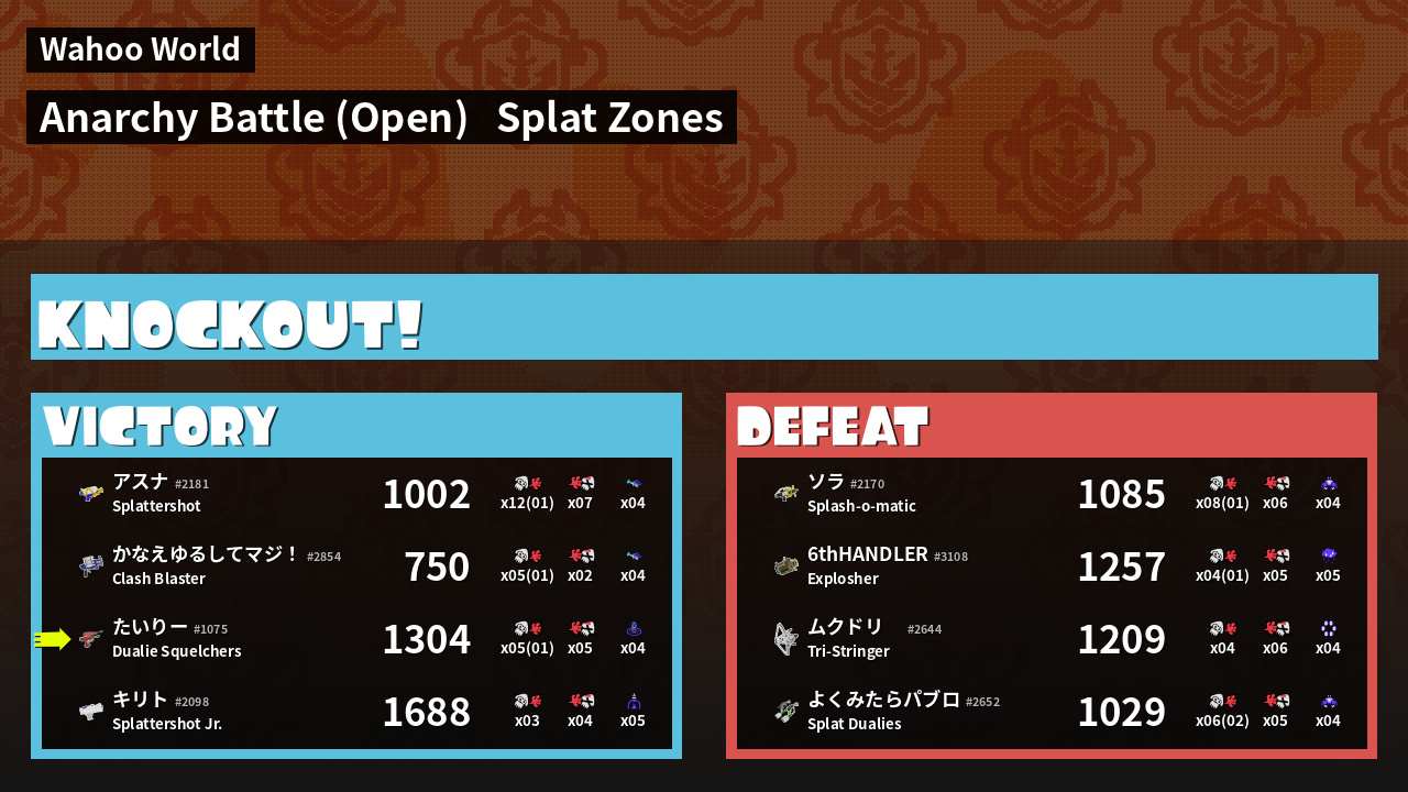 | Mode | Splat Zones - Anarchy Battle (Open) | ||