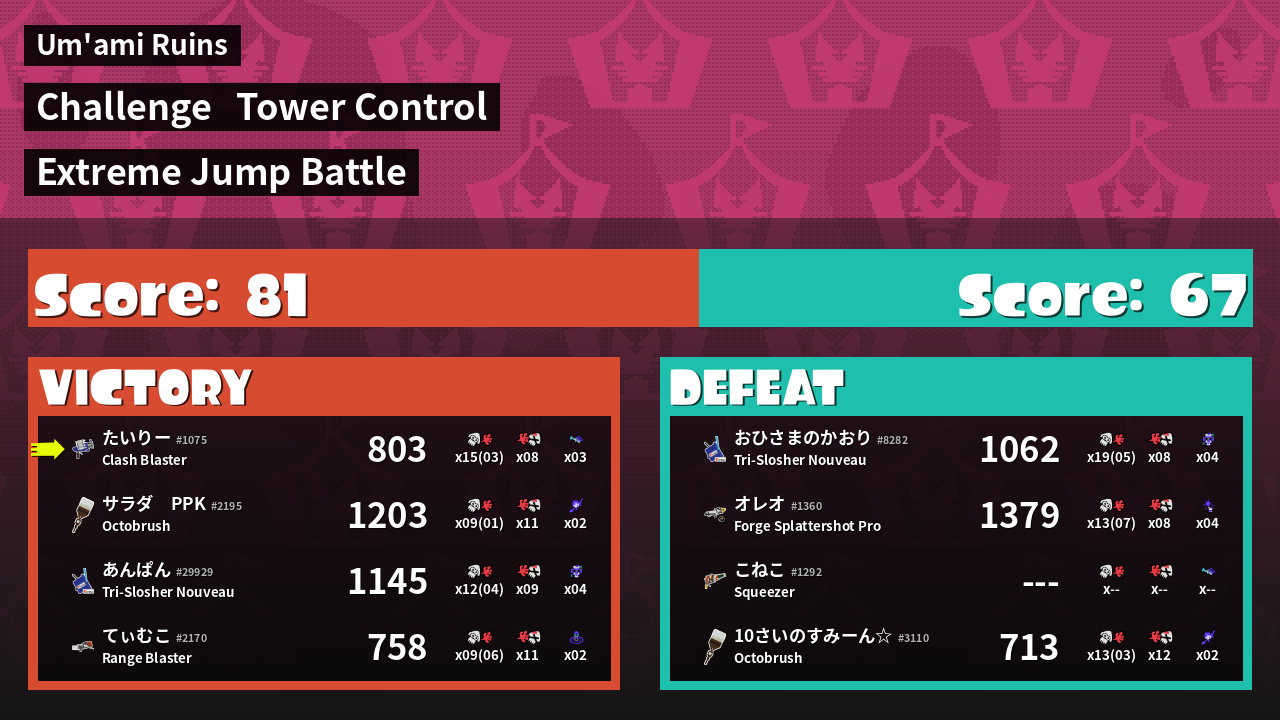 | Medals | #1 Overall Splatter #1 Popular Target #1 Super Jump Spot | ||