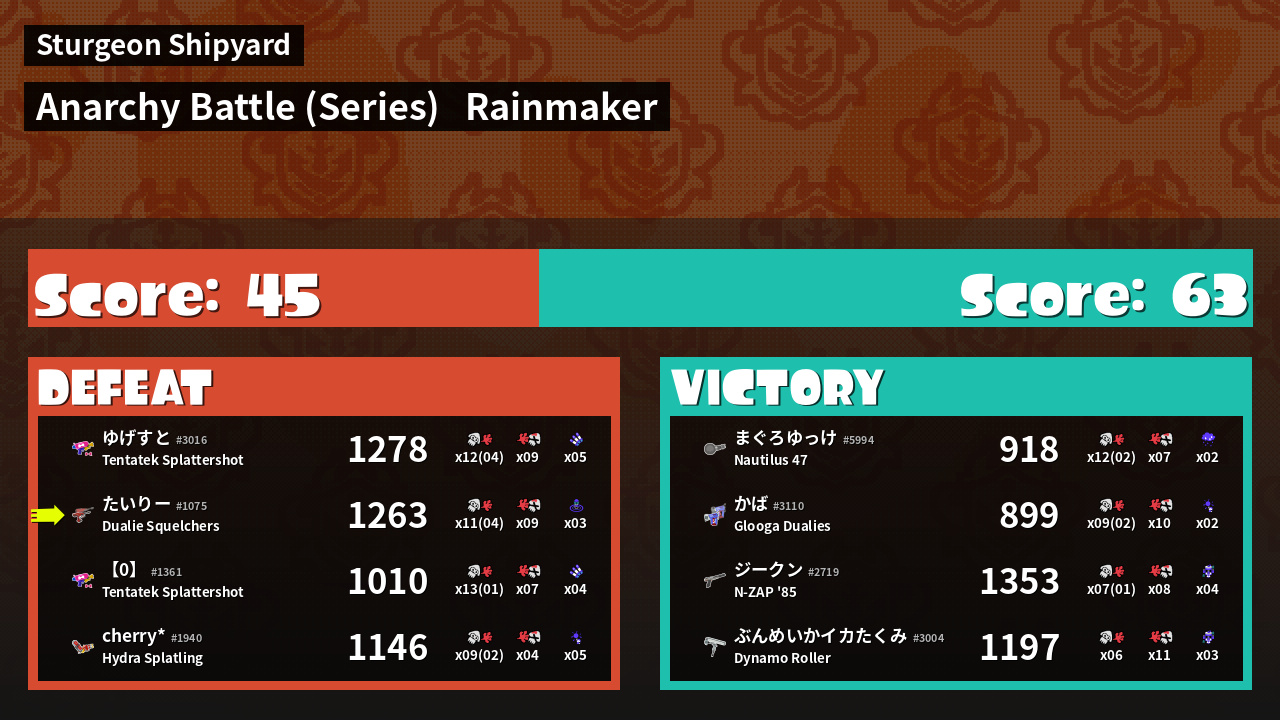 | Medals | #1 Score Booster #1 Popular Target #1 Splat Assister | ||