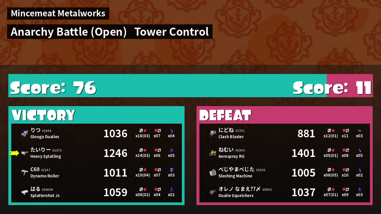 Kills / Deaths | 11 + 3 / 6 > Kill Ratio: 1.83 | ||