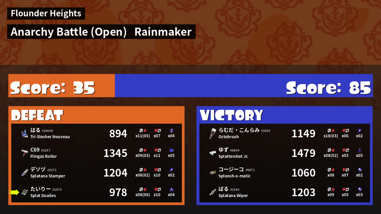 | Medals | #1 Splat Assister #1 Crab Tank User #2 Super Jump Spot | ||