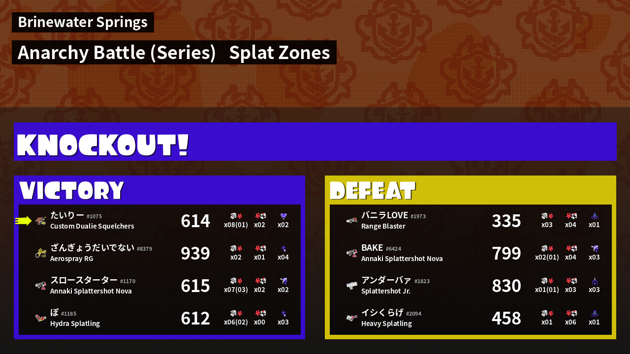 | Mode | Splat Zones - Anarchy Battle (Series) | ||