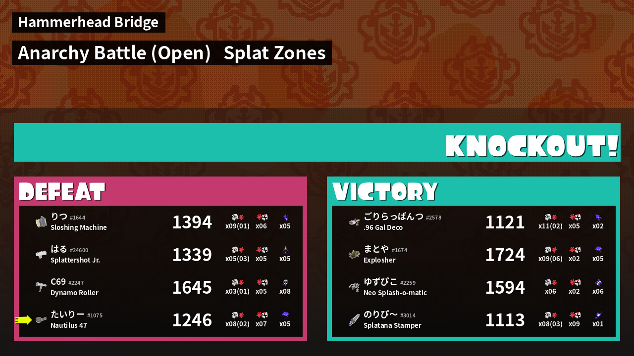 | Mode | Splat Zones - Anarchy Battle (Open) | ||
