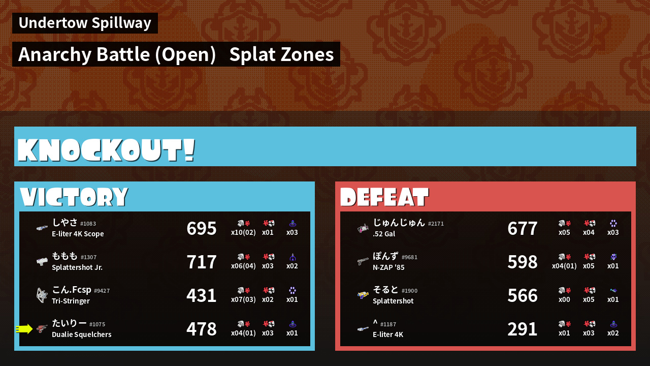 | Mode | Splat Zones - Anarchy Battle (Open) | ||