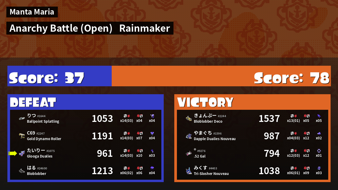 | Mode | Rainmaker - Anarchy Battle (Open) | ||
