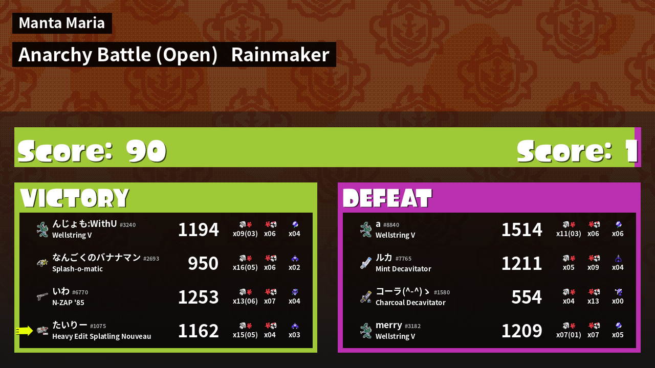 | Mode | Rainmaker - Anarchy Battle (Open) | ||