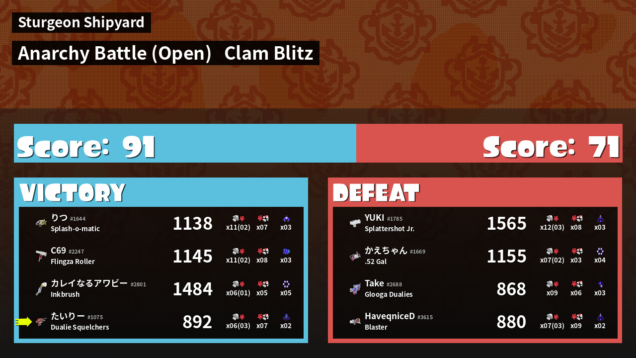 | Mode | Clam Blitz - Anarchy Battle (Open) | ||