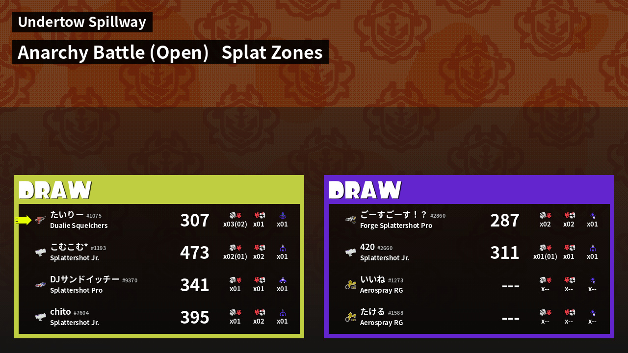 | Mode | Splat Zones - Anarchy Battle (Open) | ||