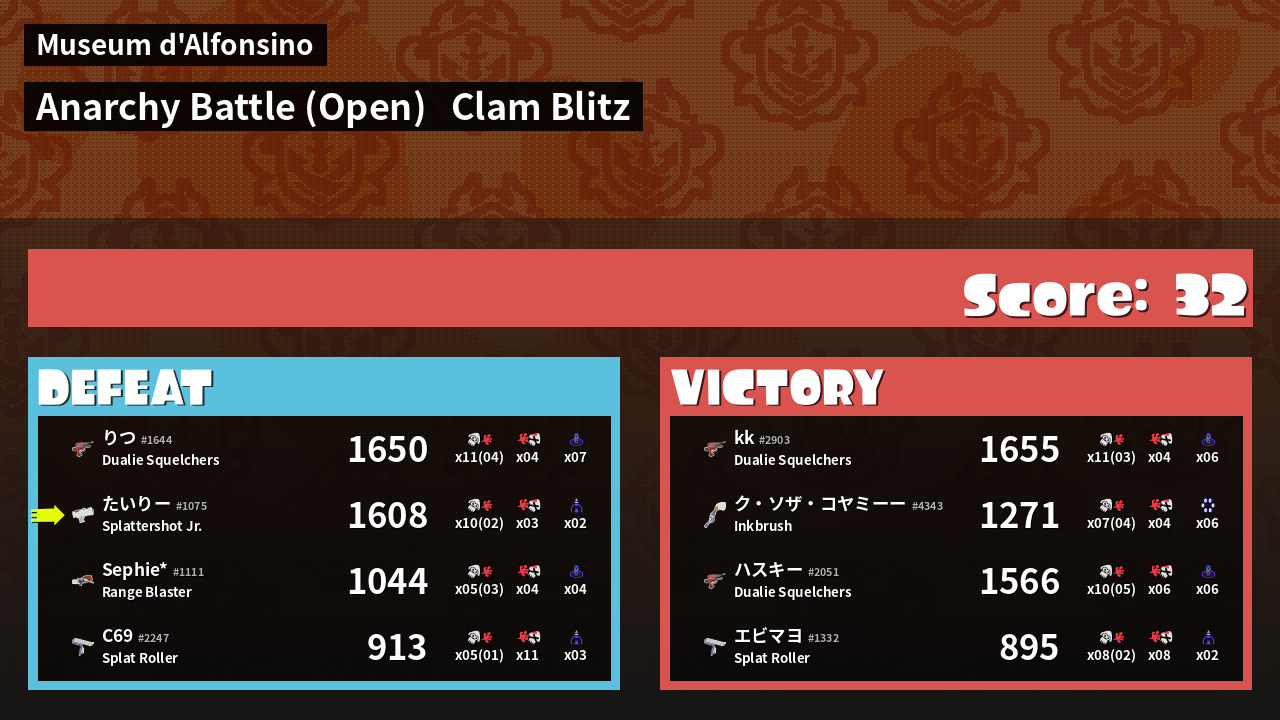 | Mode | Clam Blitz - Anarchy Battle (Open) | ||