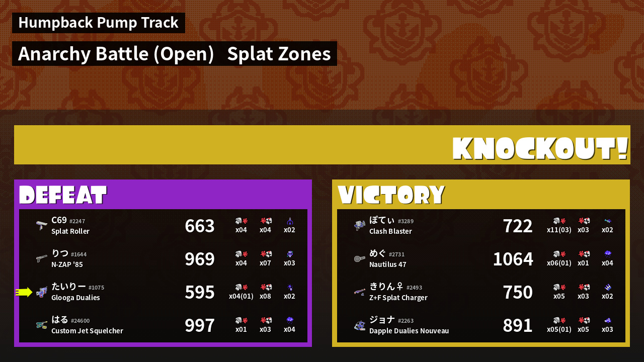 | Mode | Splat Zones - Anarchy Battle (Open) | ||