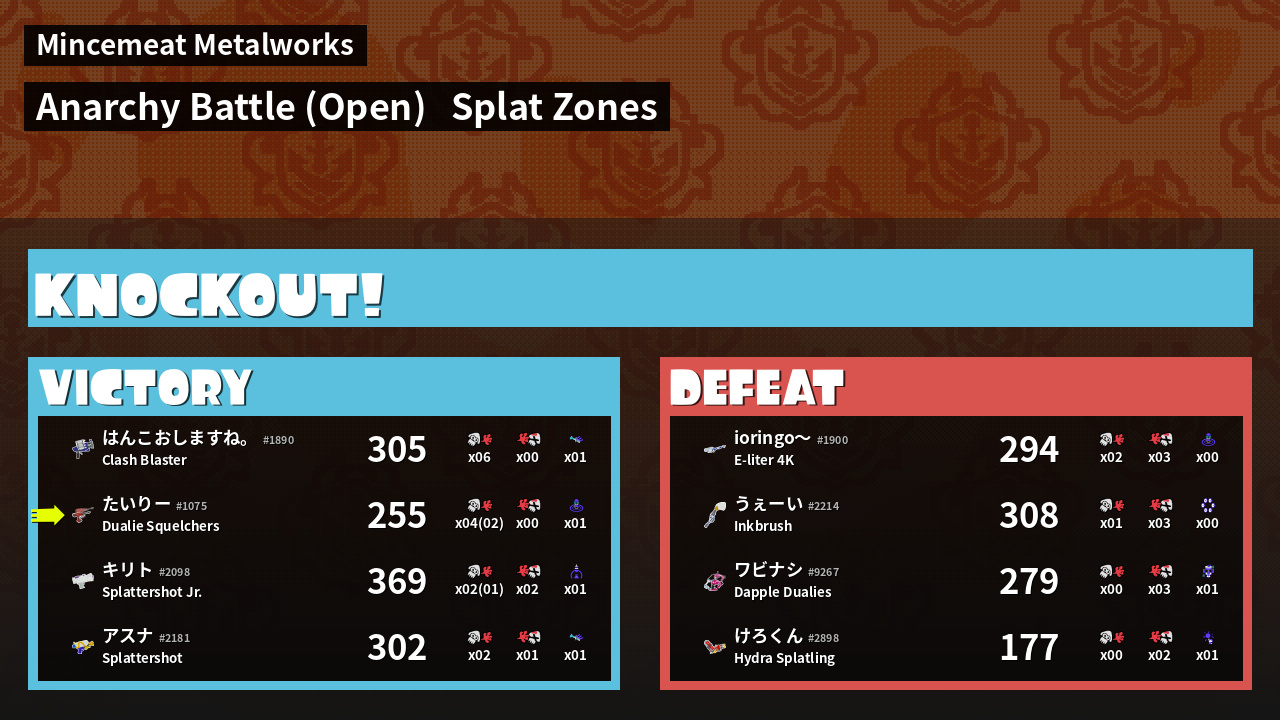 | Mode | Splat Zones - Anarchy Battle (Open) | ||