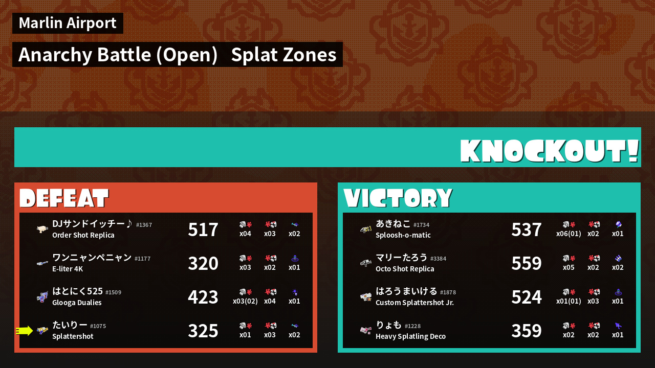 | Mode | Splat Zones - Anarchy Battle (Open) | ||