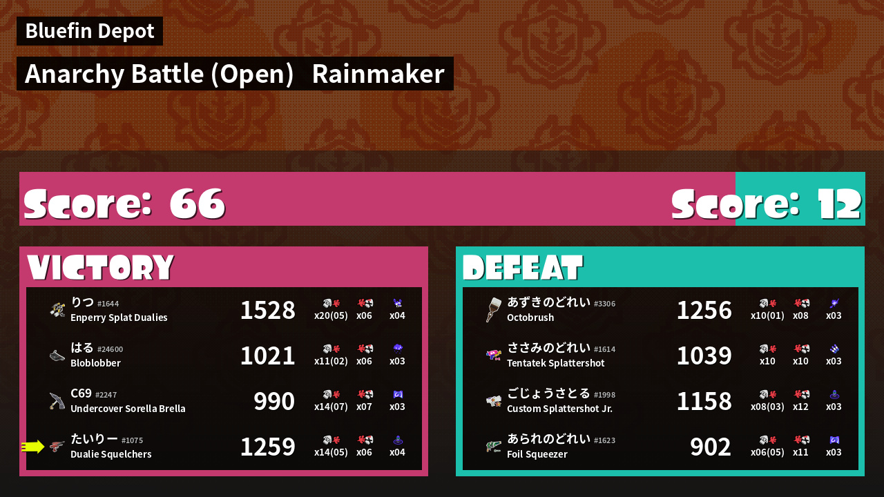 | おいしいおじさん  たいりー #1075 |  Dualie Squelchers                    | 1,259 | 9 + 5 | 6 | 1.50 |  4 | |