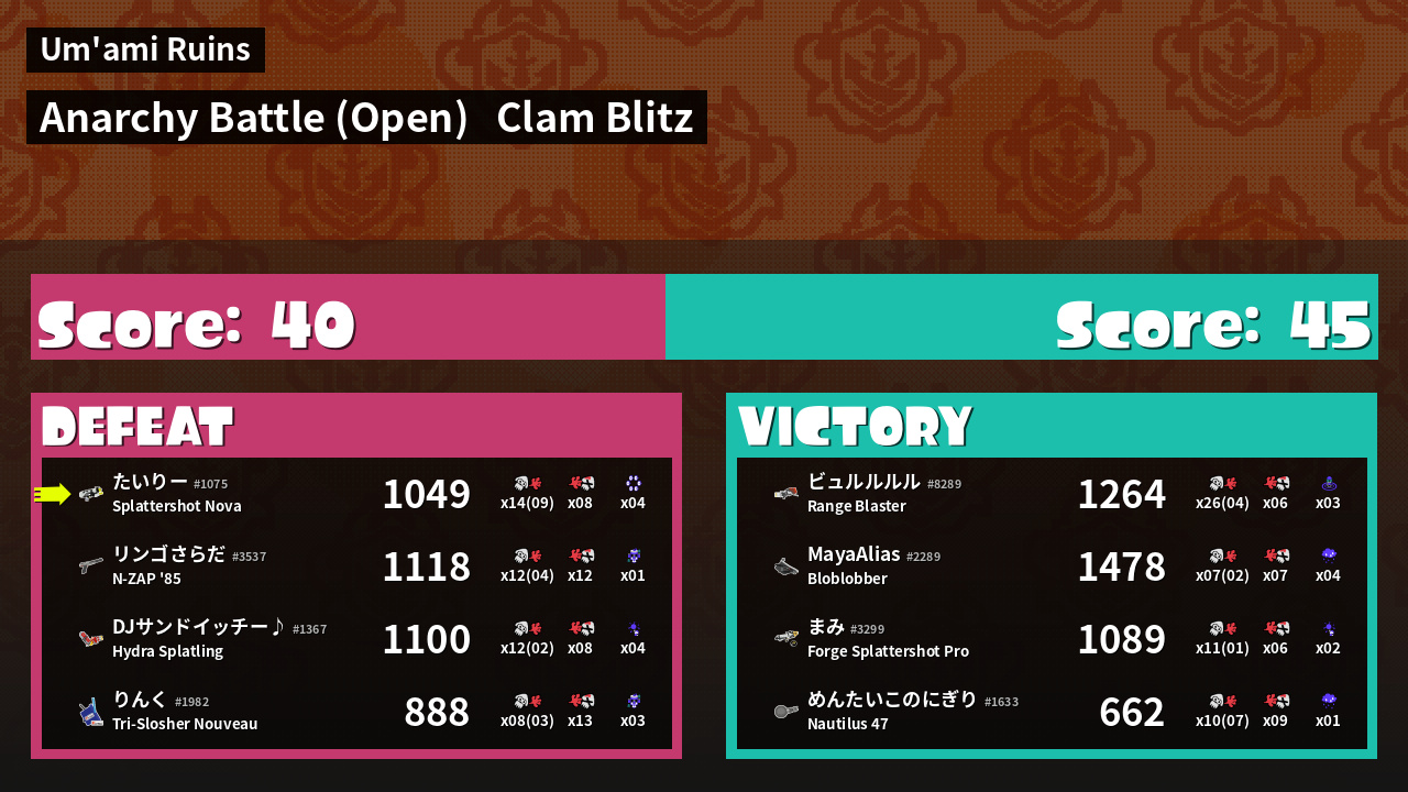 | Mode | Clam Blitz - Anarchy Battle (Open) | ||
