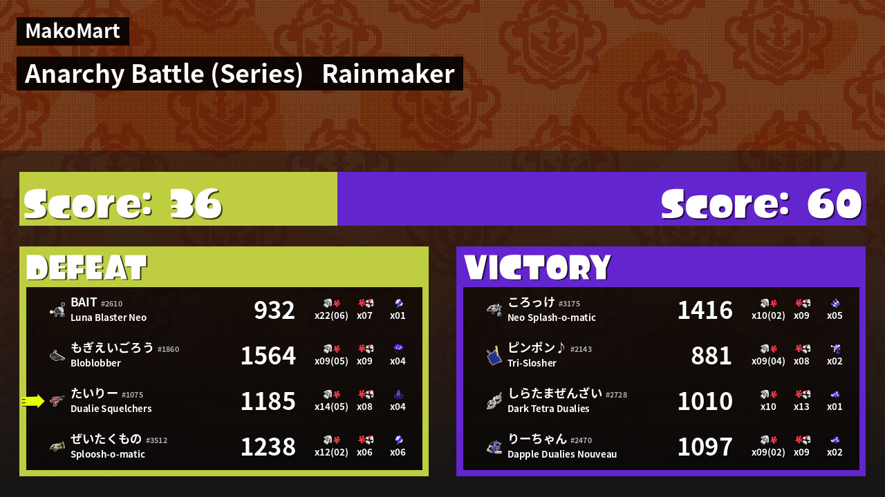 | Mode | Rainmaker - Anarchy Battle (Series) | ||