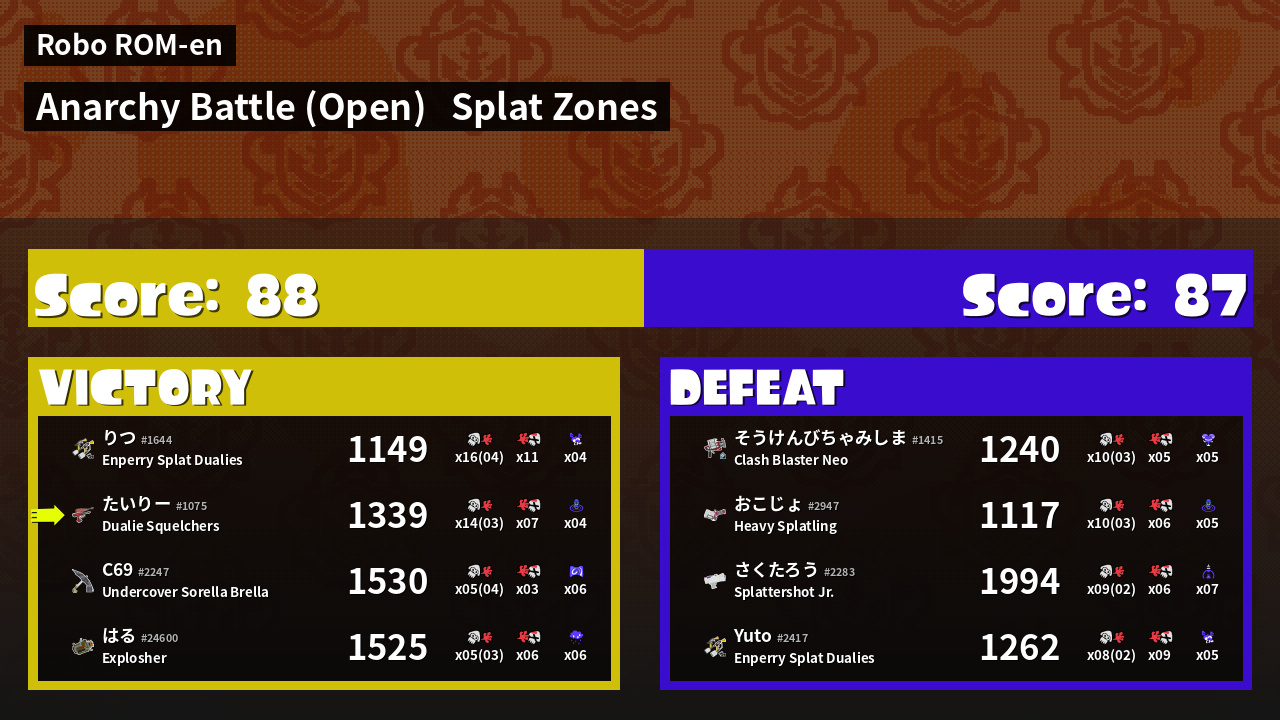 | Mode | Splat Zones - Anarchy Battle (Open) | ||