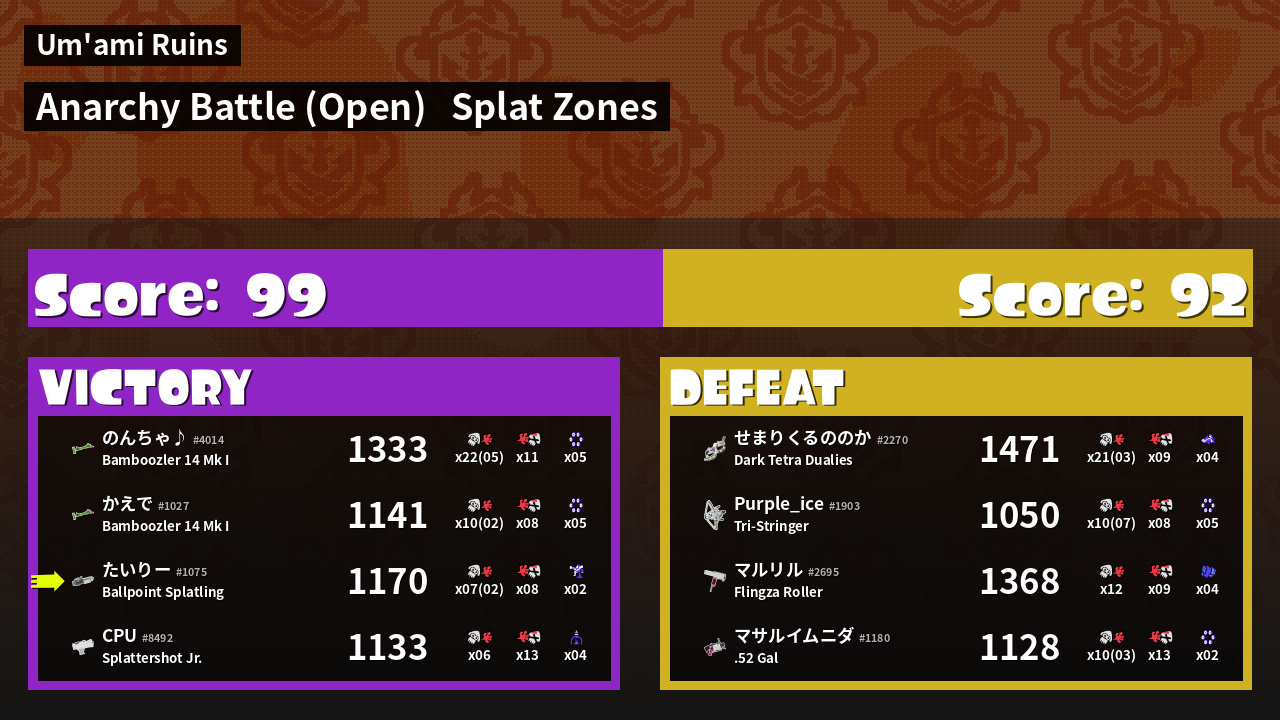 | Mode | Splat Zones - Anarchy Battle (Open) | ||