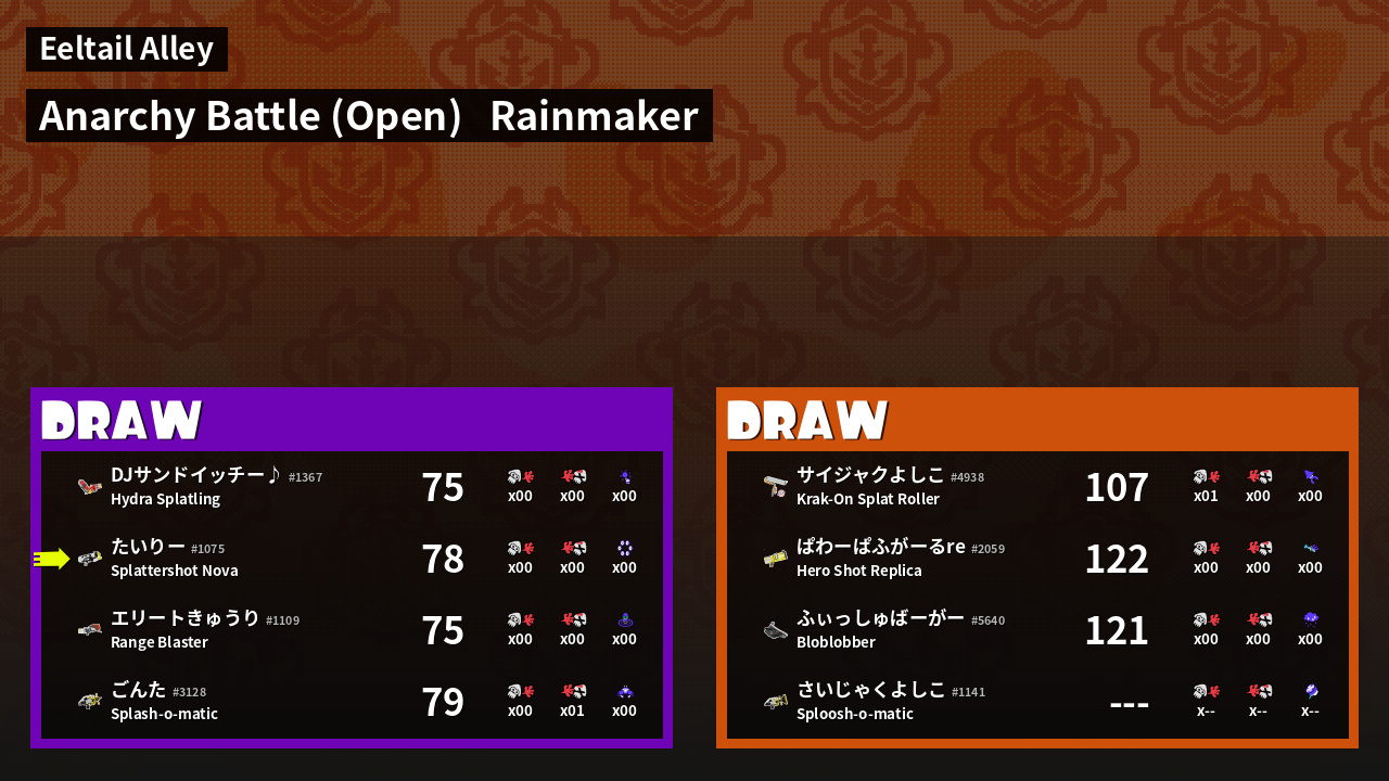 | Mode | Rainmaker - Anarchy Battle (Open) | ||