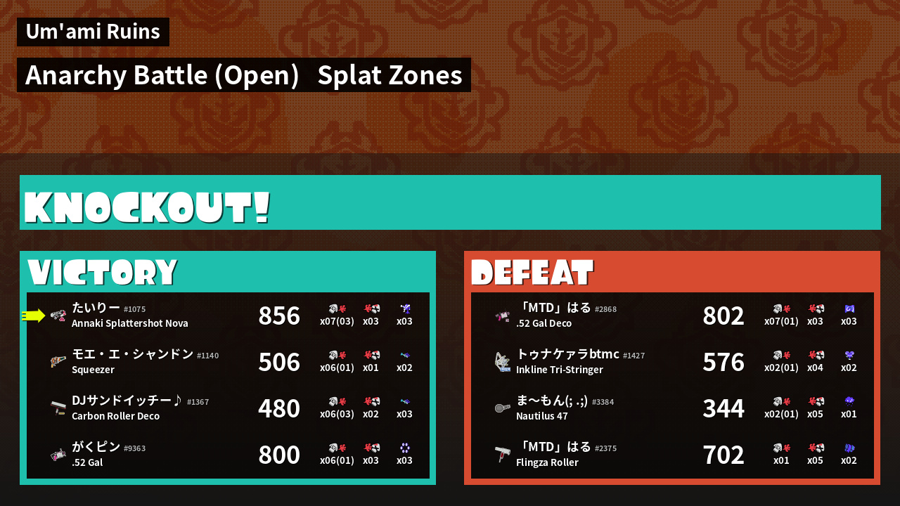 | Mode | Splat Zones - Anarchy Battle (Open) | ||
