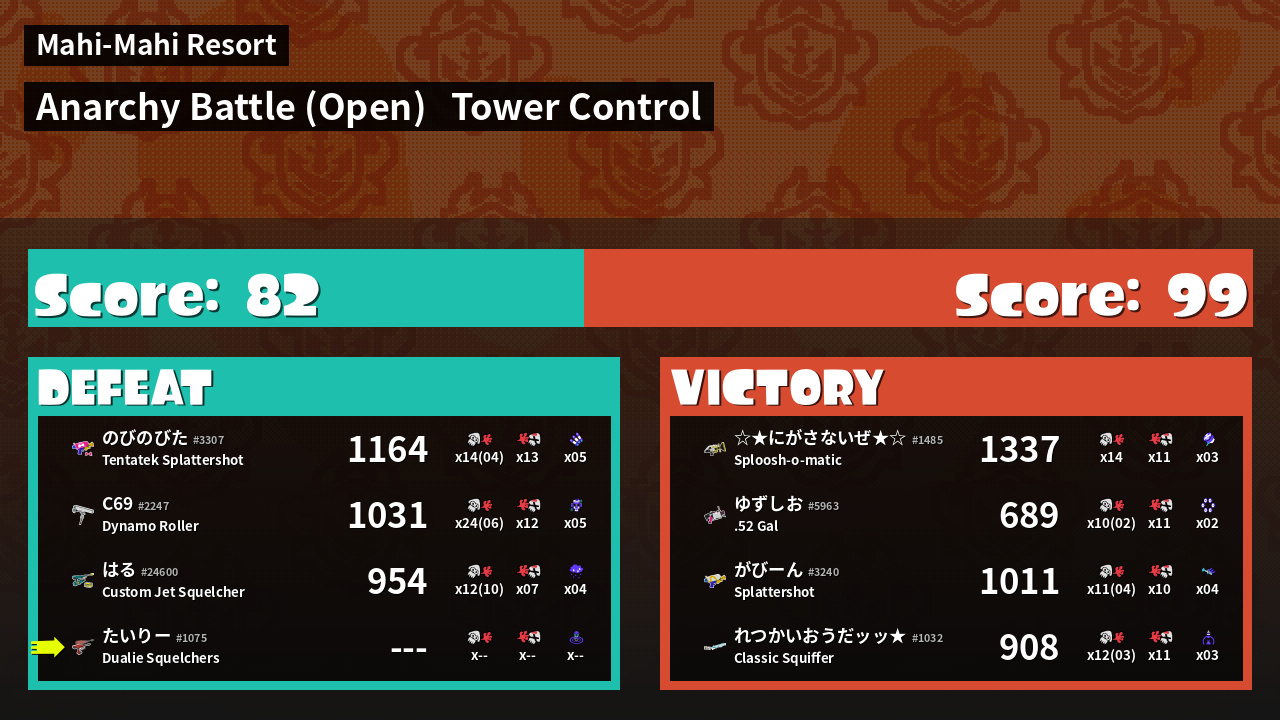 | Mode | Tower Control - Anarchy Battle (Open) | ||