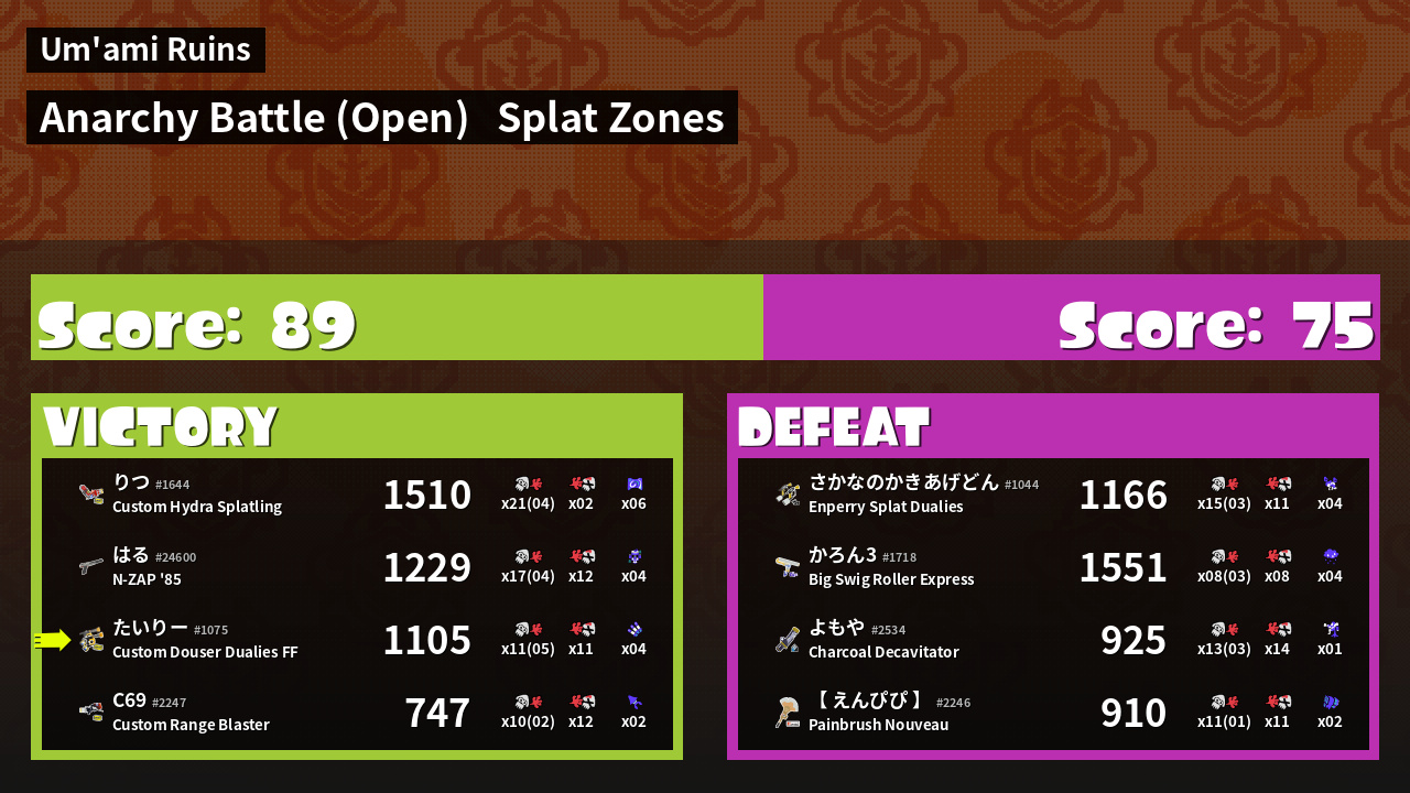 | Mode | Splat Zones - Anarchy Battle (Open) | ||