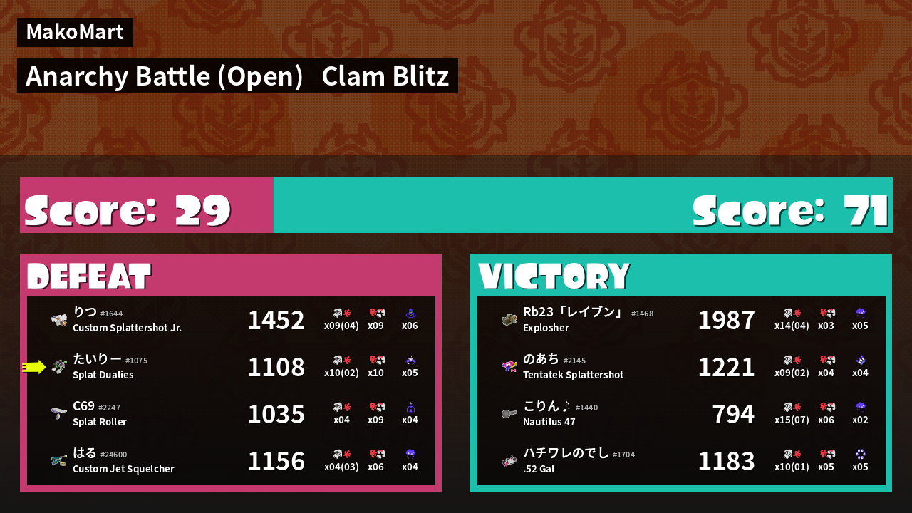 | Mode | Clam Blitz - Anarchy Battle (Open) | ||