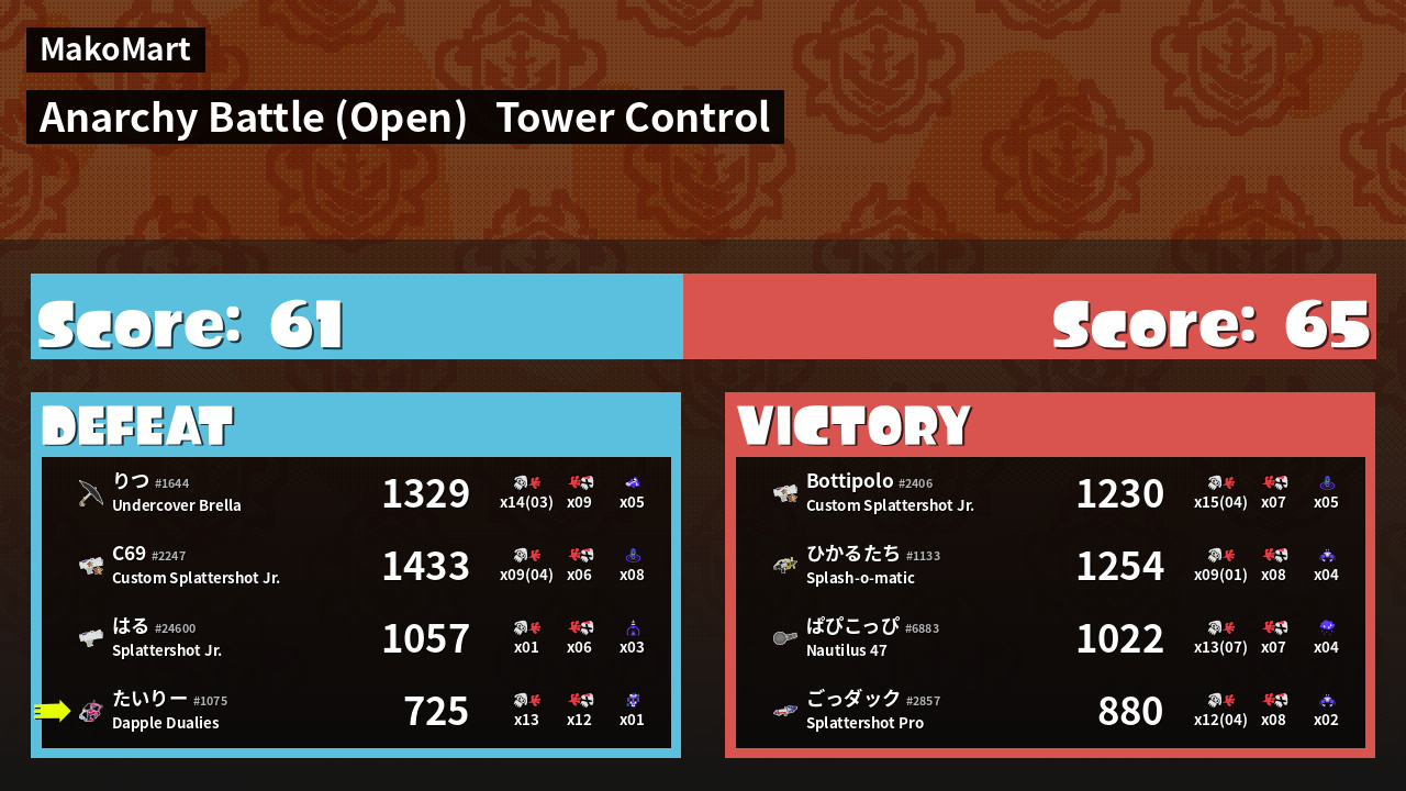 | Mode | Tower Control - Anarchy Battle (Open) | ||