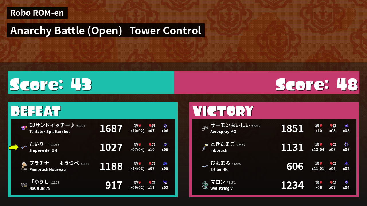 | Mode | Tower Control - Anarchy Battle (Open) | ||