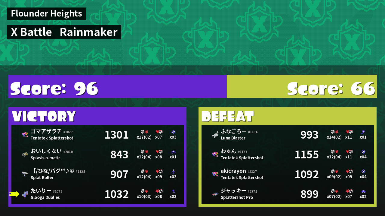 | Mode | Rainmaker - X Battle | ||