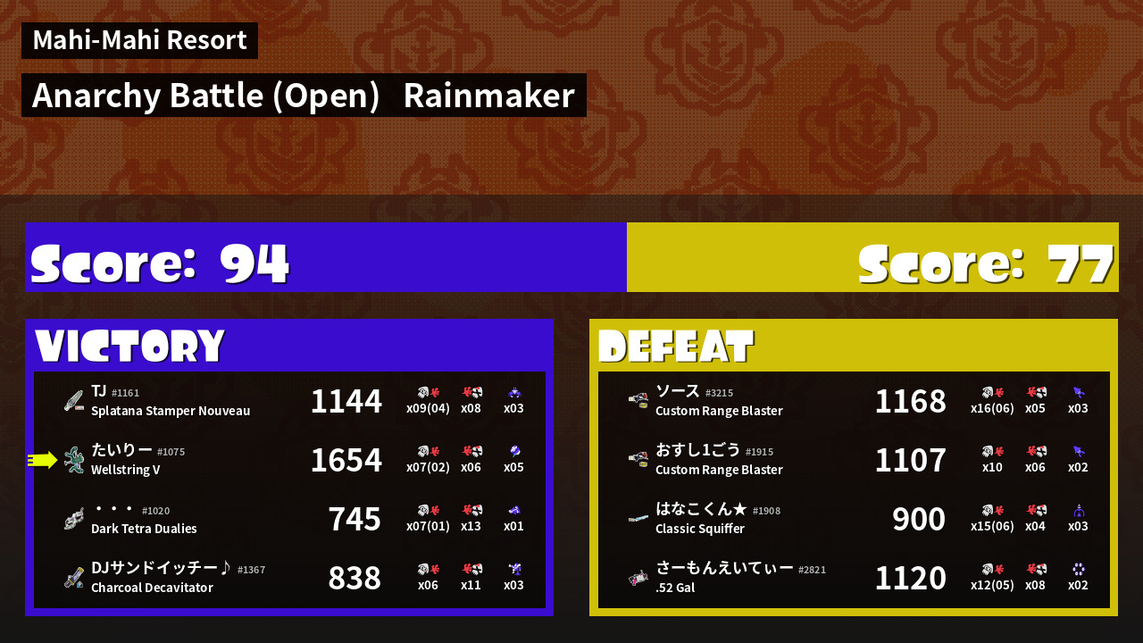| Mode | Rainmaker - Anarchy Battle (Open) | ||
