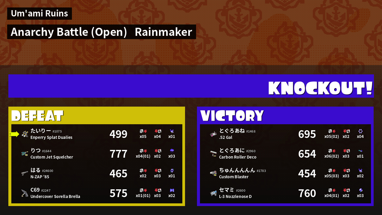 | Mode | Rainmaker - Anarchy Battle (Open) | ||