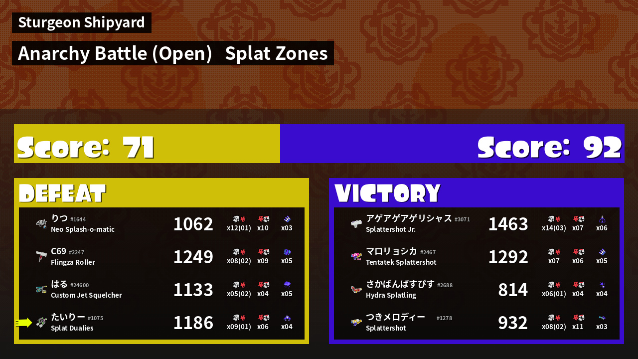| Mode | Splat Zones - Anarchy Battle (Open) | ||