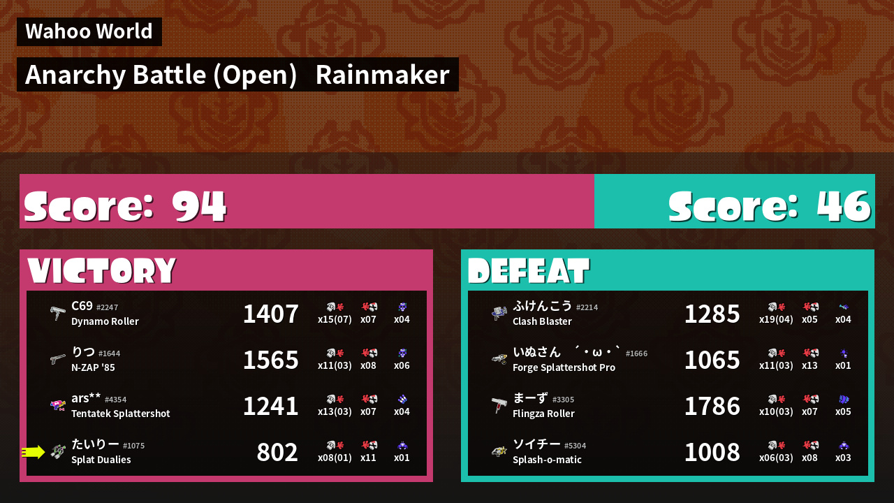 | Mode | Rainmaker - Anarchy Battle (Open) | ||