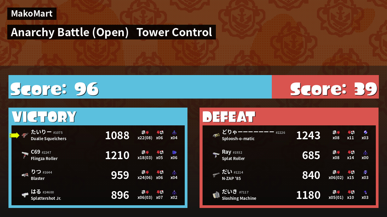 | Mode | Tower Control - Anarchy Battle (Open) | ||