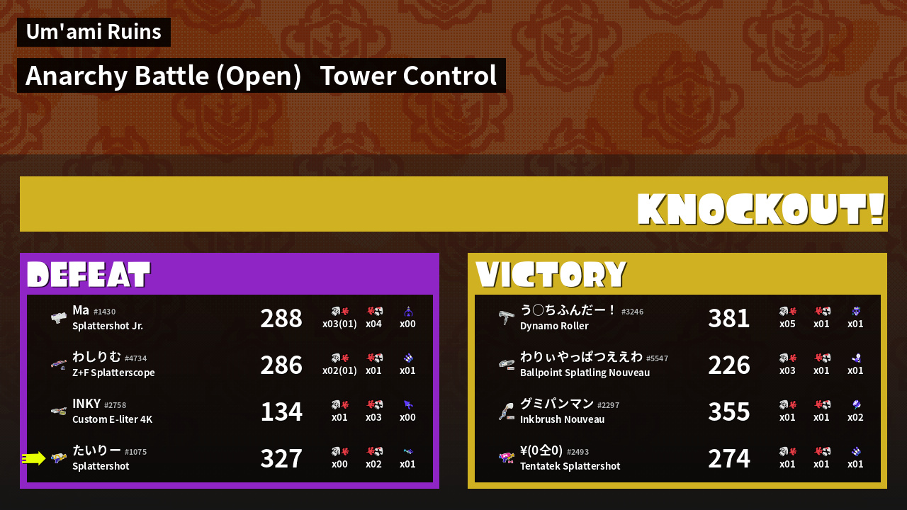 | Mode | Tower Control - Anarchy Battle (Open) | ||
