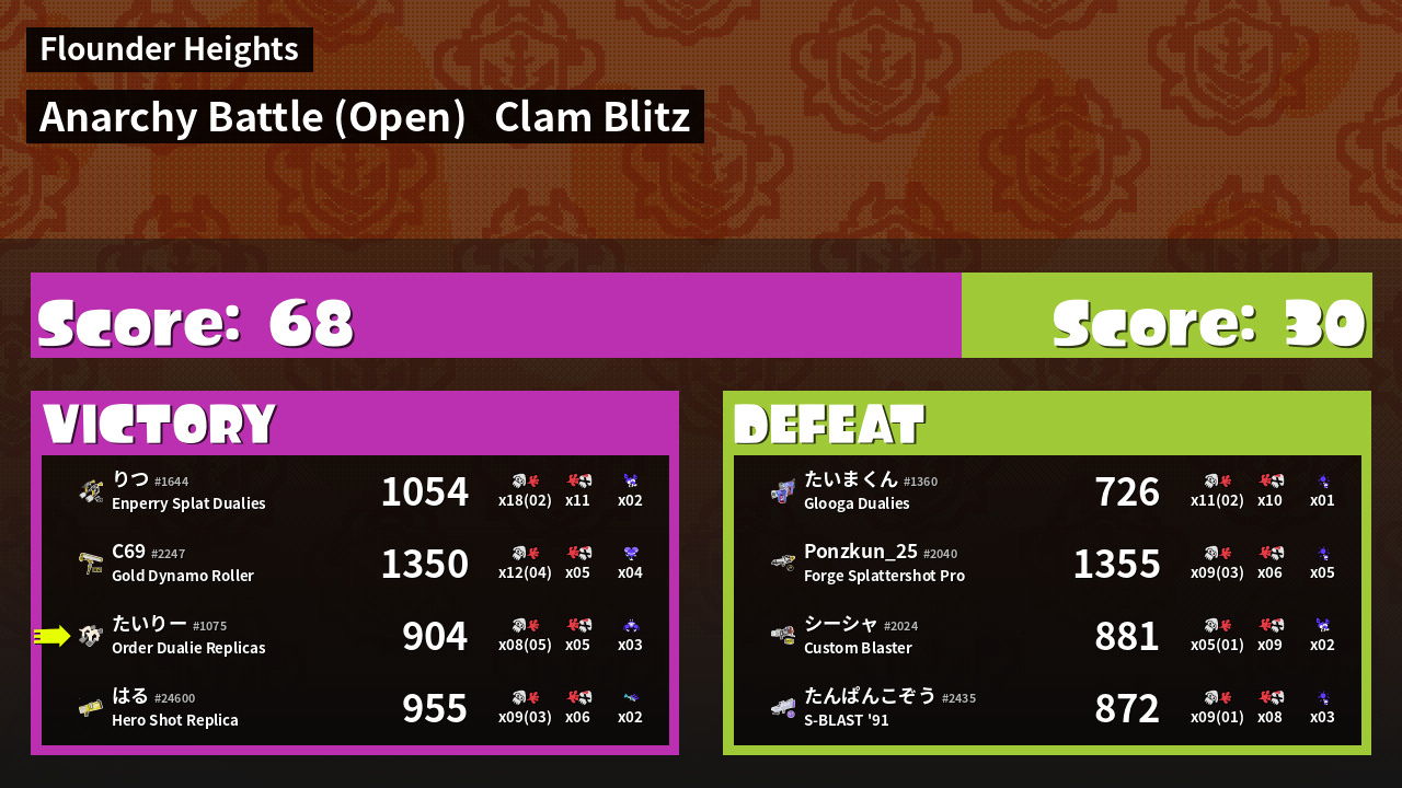 | Mode | Clam Blitz - Anarchy Battle (Open) | ||