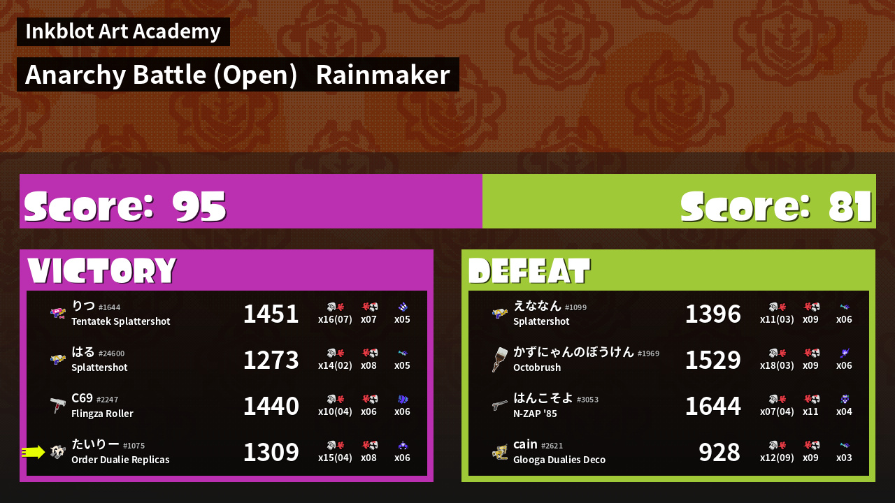 | Mode | Rainmaker - Anarchy Battle (Open) | ||