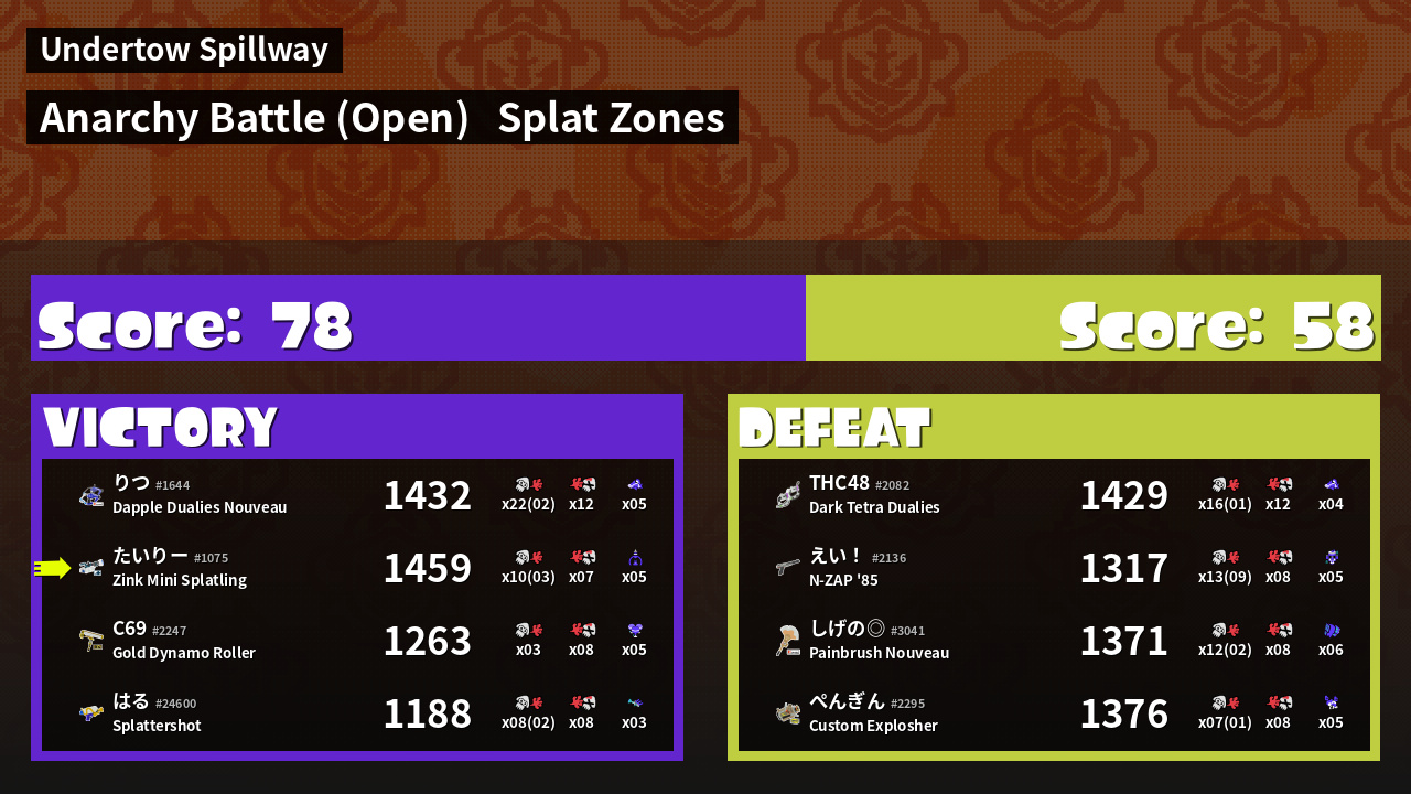 | Mode | Splat Zones - Anarchy Battle (Open) | ||