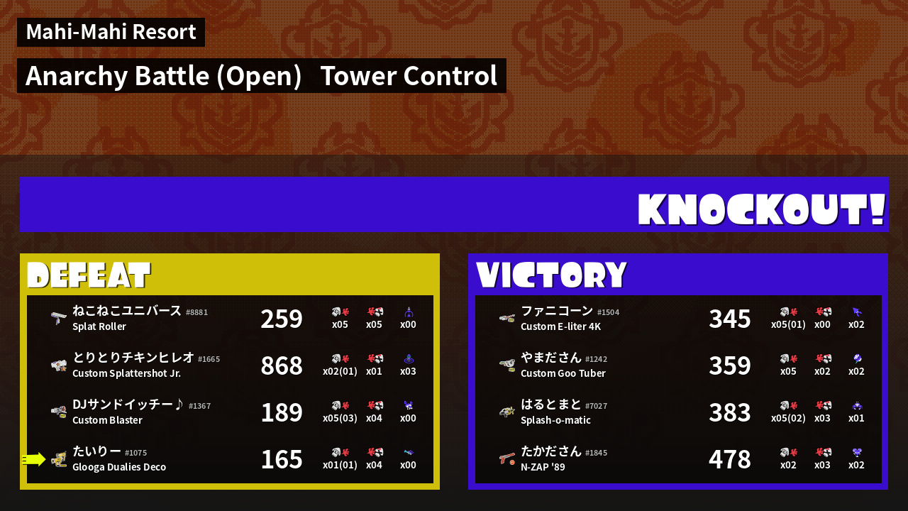 | Mode | Tower Control - Anarchy Battle (Open) | ||