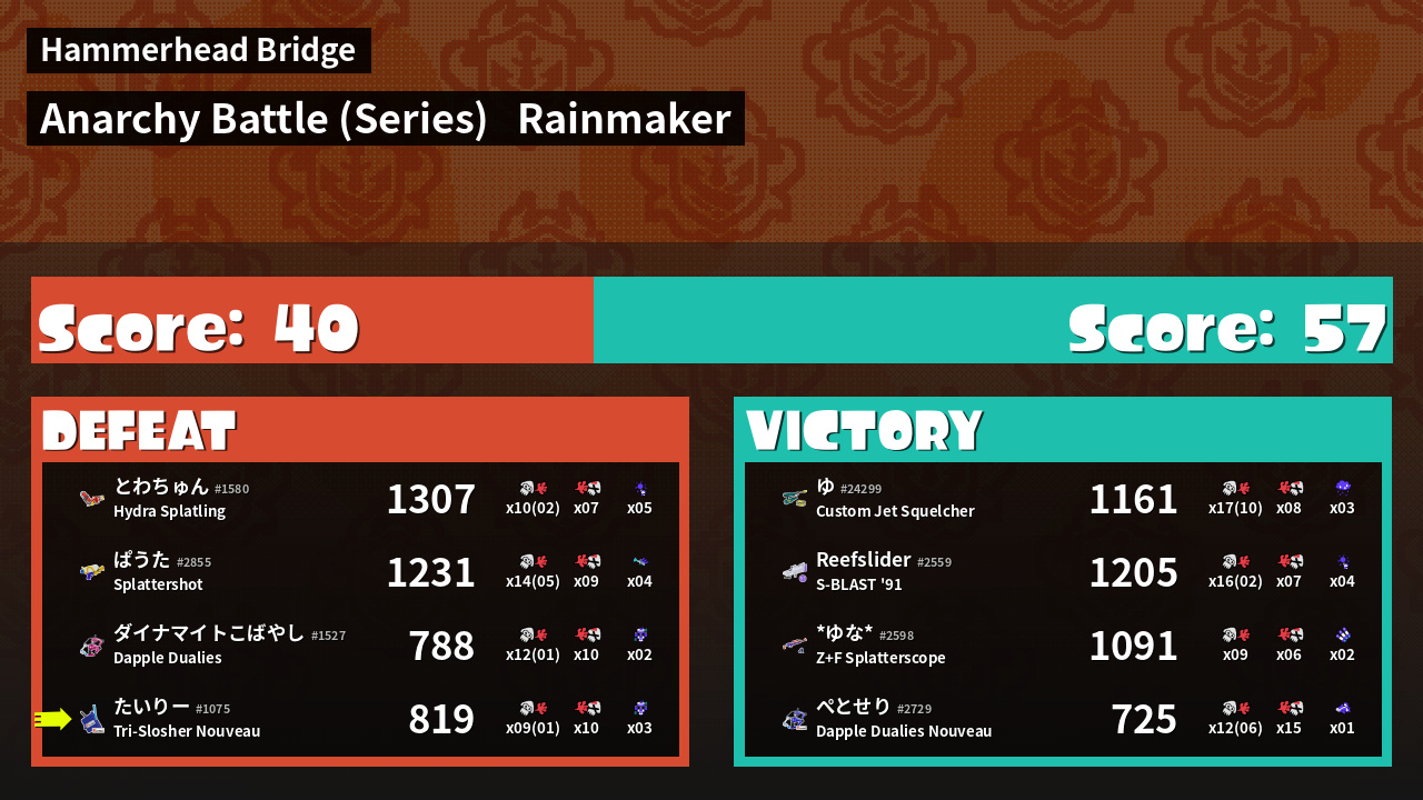 | Mode | Rainmaker - Anarchy Battle (Series) | ||