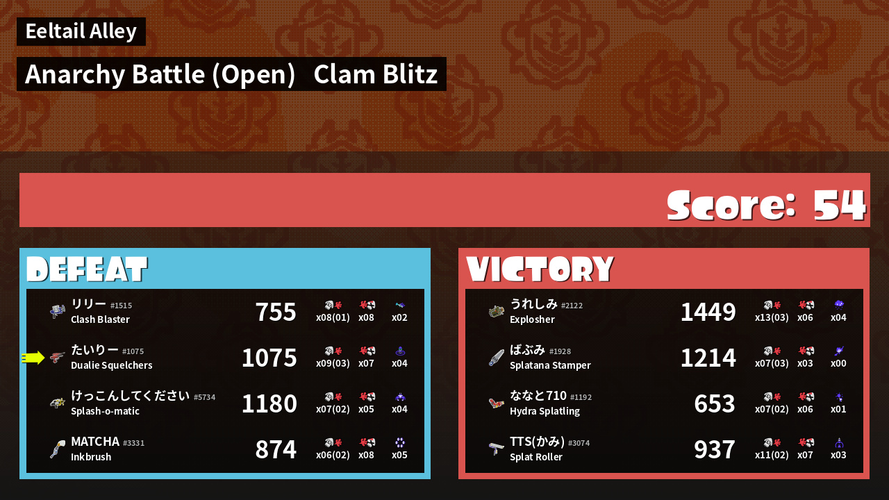 | Mode | Clam Blitz - Anarchy Battle (Open) | ||