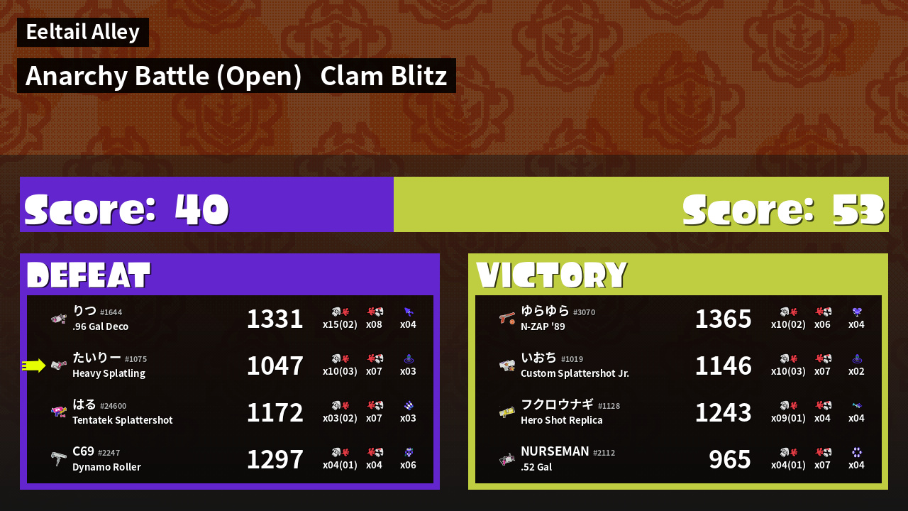 | Mode | Clam Blitz - Anarchy Battle (Open) | ||