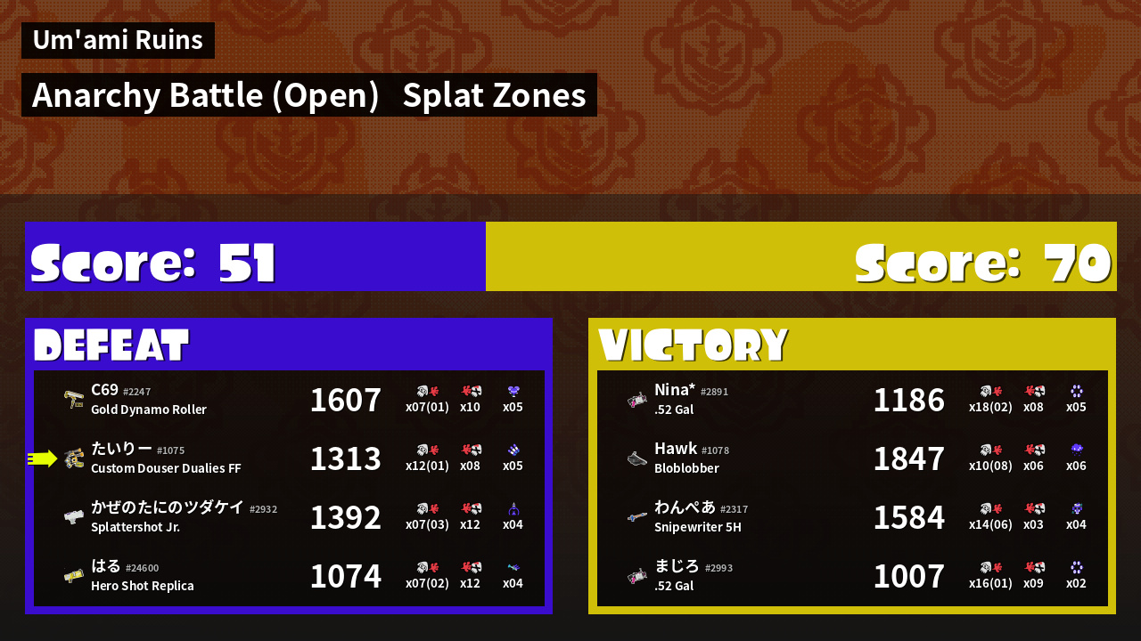 | Mode | Splat Zones - Anarchy Battle (Open) | ||