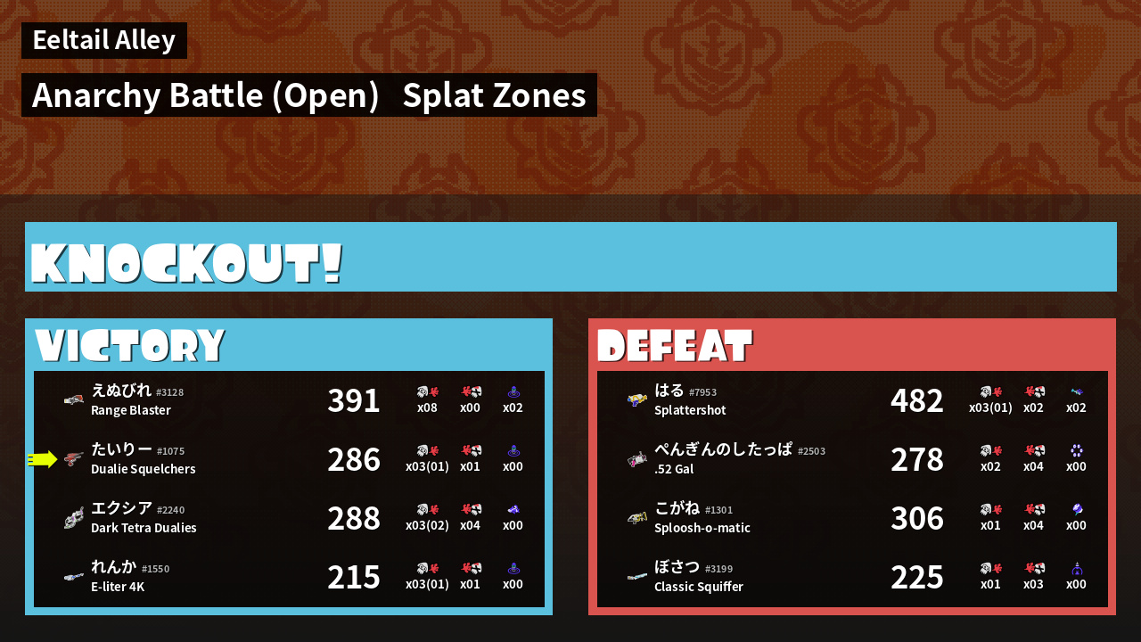 | Mode | Splat Zones - Anarchy Battle (Open) | ||