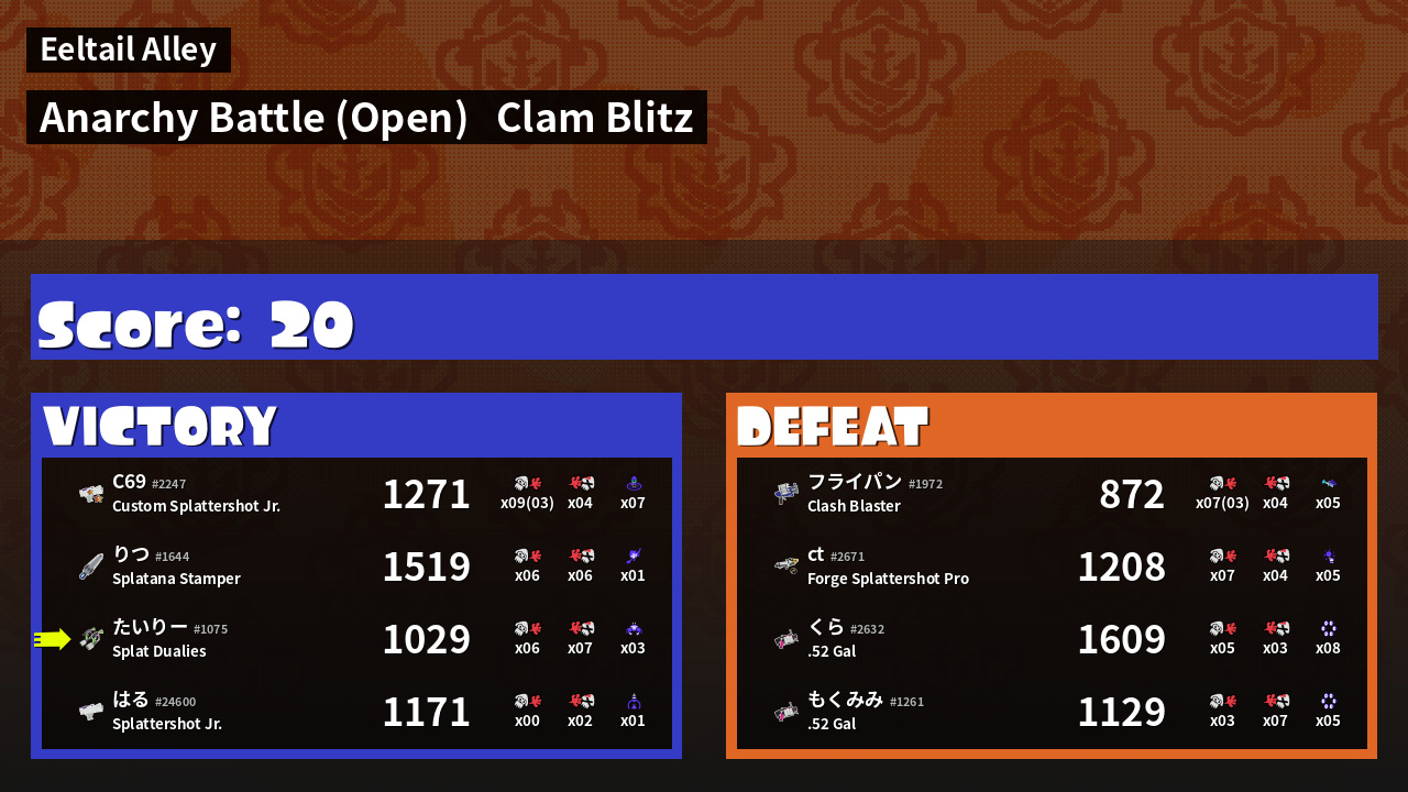 | Mode | Clam Blitz - Anarchy Battle (Open) | ||